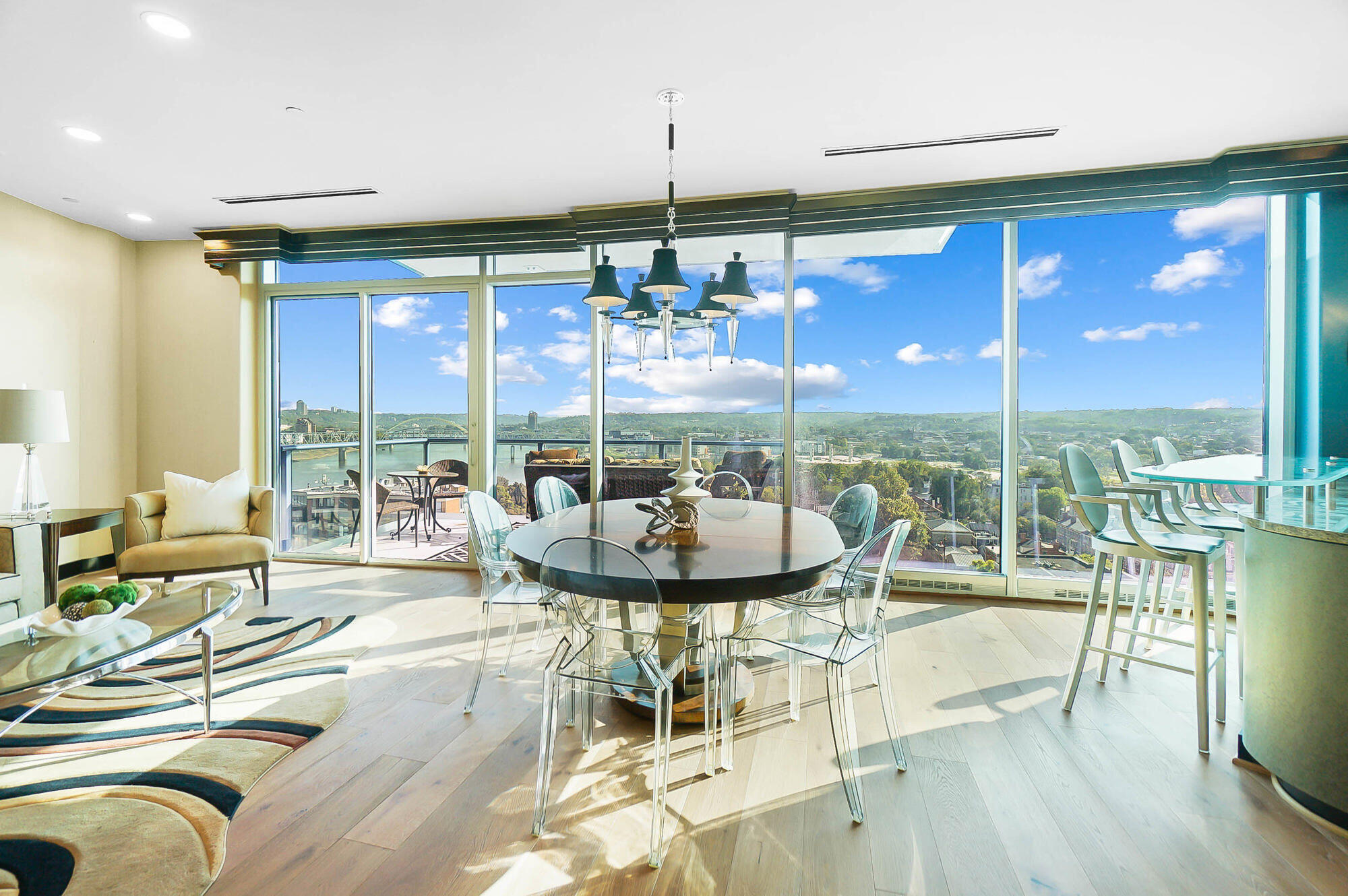 Experience luxury living with unparalleled views of the Queen City and the iconic Roebling Bridge. This extraordinary condo captures the energy of a chic NYC loft while offering the convenience of being in the heart of Covington. Enjoy expansive open living spaces, warm hardwood floors, and a gourmet kitchen with high-end cabinetry, modern countertops, and professional-grade finishes. Step out to a spacious balcony with sweeping views, or relax inside with custom artistic lighting throughout, including Swarovski crystal fixtures and new LED accents. The primary suite is a true retreat, featuring a glamorous spa-inspired bath and custom walk-in closet. Designed with elegance and comfort in mind, this home is ideal for both entertaining and everyday living. With luxury finishes, lifesty...