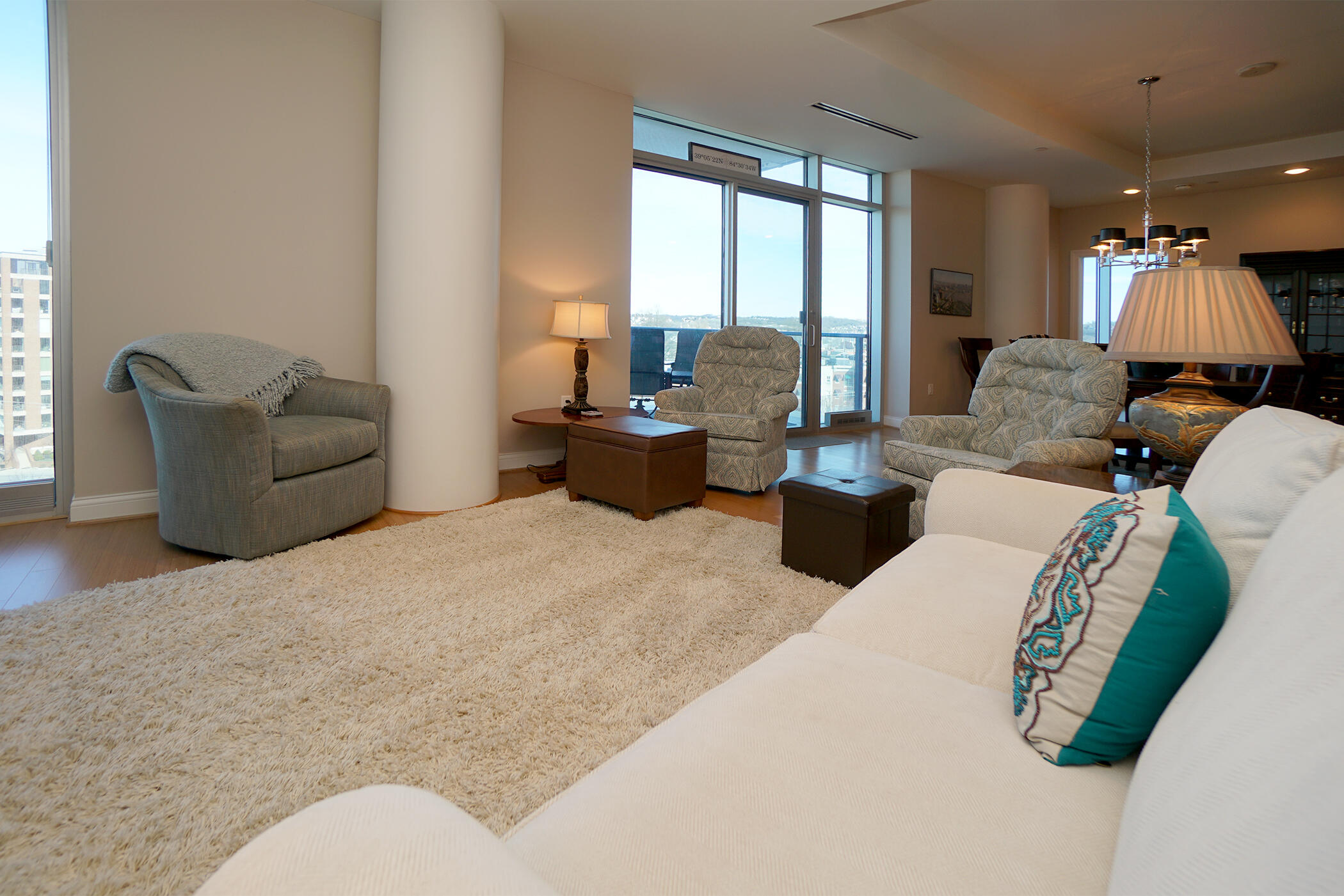 Sophisticated 7th floor condo with two full baths, two garage spaces, phenomenal Cincinnati skyline and Ohio river views. Easy living with all the incredible luxury amenities including exceptional exercise area, pool/hot tub, guest suites and reception space, library and theater for entertaining. Outdoor party plaza with grills and fire pit. So much to do within walking distance.