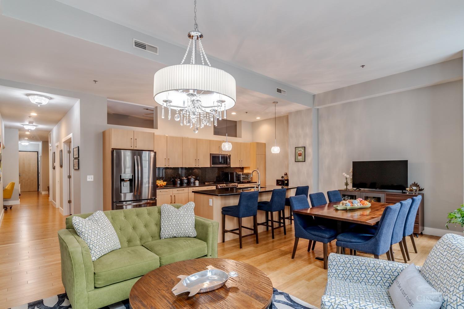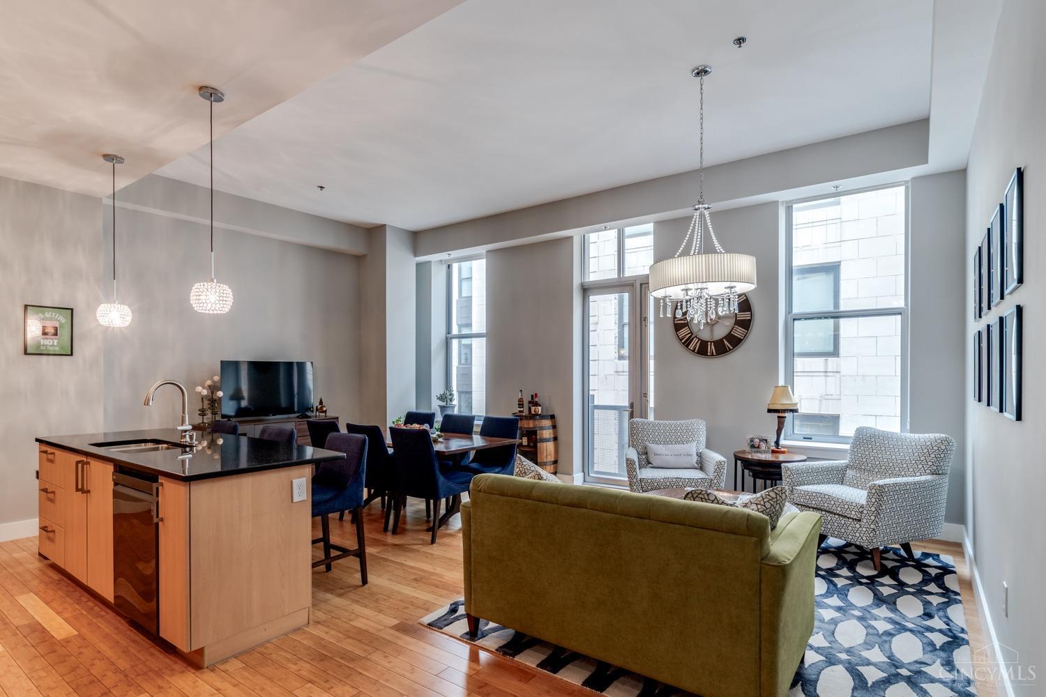 Spectacular south facing condo in the McAlpin. Immersed in light this spacious home boasts 11' ceilings with an open floor plan. Bamboo hardwood floors throughout. 2 bedroom plus a family room/study space and an office nook. Huge bedrooms with floor to ceiling custom closets. Newly remodeled primary en-suite bathroom and full guest bathroom. Newer kitchen appliances and light fixtures. Private balcony. The building offers large rooftop deck with city views and outdoor kitchen is just steps from the unit. Completely remodeled lobby, club room, media room and conference room. Assigned parking spot and storage space in attached garage. Additional parking spaces available in garage across the street. Enjoy all downtown offers just a short walk away. 1.5 blocks from fountain square, award wi...