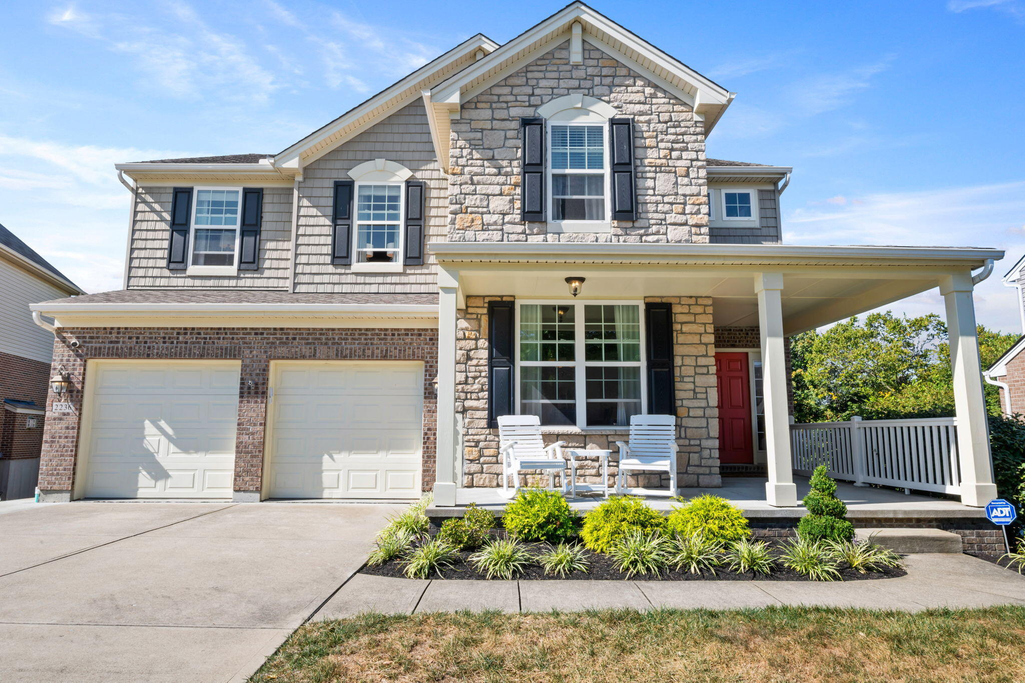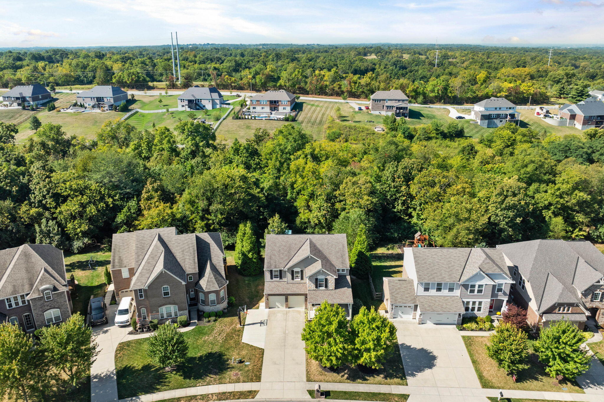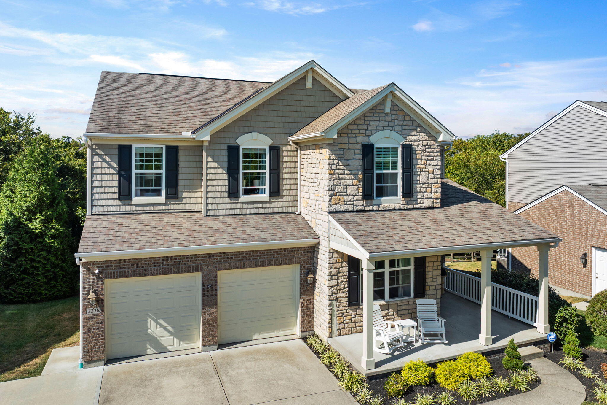Amazing home located in the sought-after Thornwilde community! This delightfully maintained residence features a spacious and thoughtfully designed layout that combines timeless style with everyday livability. A relaxing front porch sets the tone, leading into an inviting interior with a cozy sitting/living area, a lovely dining room & an impressive two-story great room filled with natural light and anchored by a comforting fireplace, also featuring a convenient side staircase with a second level overlook. The open-concept kitchen showcases a stunning island & effortless flow for both daily life & entertaining. Rich hardwood floors & tasteful details add warmth and character throughout. The finished lower level offers versatile space for a media room, home office, gym or additional bedroom, plus there's a full bathroom. This area walks out to a generous backyard with multiple outdoor living areas seamlessly blending indoor & outdoor spaces. Enjoy a wooded rear view offering privacy & a serene natural backdrop. Convenient to schools, shopping, dining, CVG Airport & just minutes to I-275. Community amenities include clubhouse, pool, tennis court & walking trail. Shows beautifully!