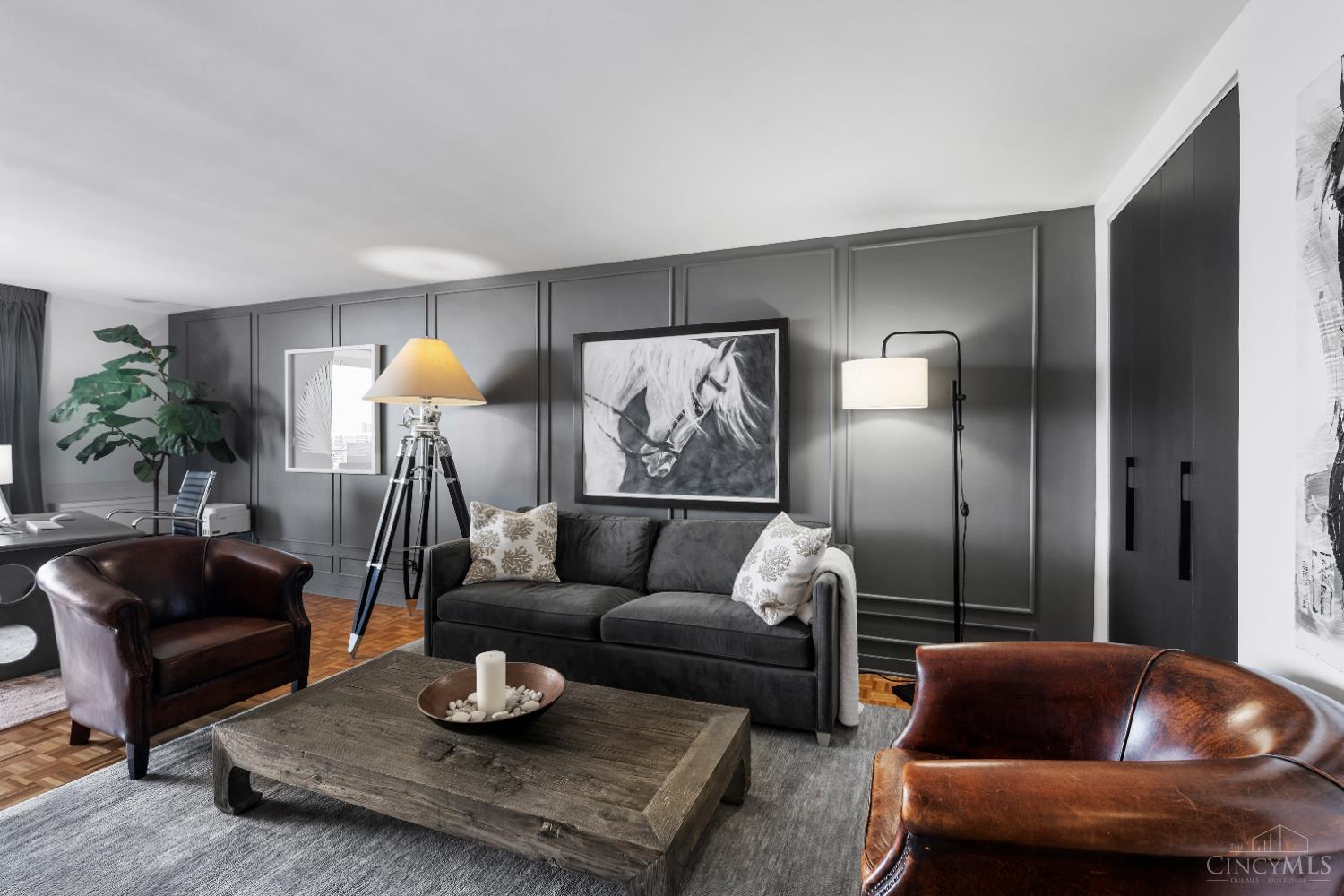 Experience breathtaking panoramic views from this designer-decorated residence, located just one floor below the penthouse. Enjoy the elegance & comfort of luxury hotel-style living in your own home. The state-of-the-art kitchen features stunning soapstone countertops and custom cabinetry, while the newly renovated designer bathroom adds a touch of sophistication. Beautiful wood floors flow throughout the space, complemented by contemporary lighting and custom window treatments. Step out onto the expansive 21x8 balcony and take in sweeping 10-mile views. Residents enjoy access to an exceptional outdoor pool, 24/7 concierge service, and valet garage parking available for just $80/month. Abundant storage space completes this well-appointed home.