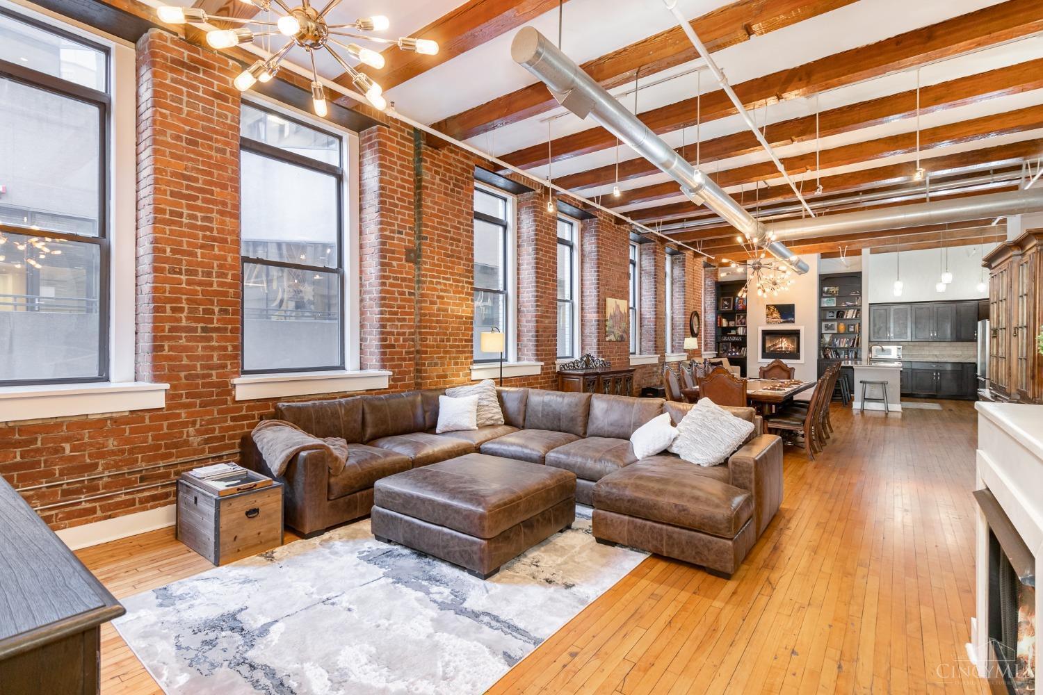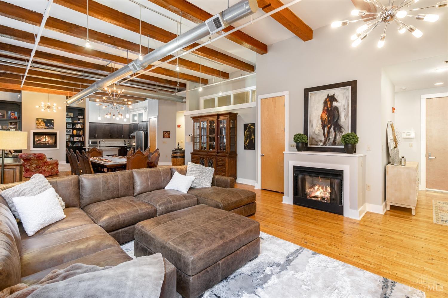 Stunning loft with updated kitchen & baths, built ins, custom closet systems. 2 beds each with en-suite bath, plus hallway half bath. Exposed brick wall & high beamed ceilings, original hardwood floors, steel duct work, bring best historic features to modern condo in the heart of the city. Roof top with stunning city views, 2 assigned attached garage spaces. This one has it all!