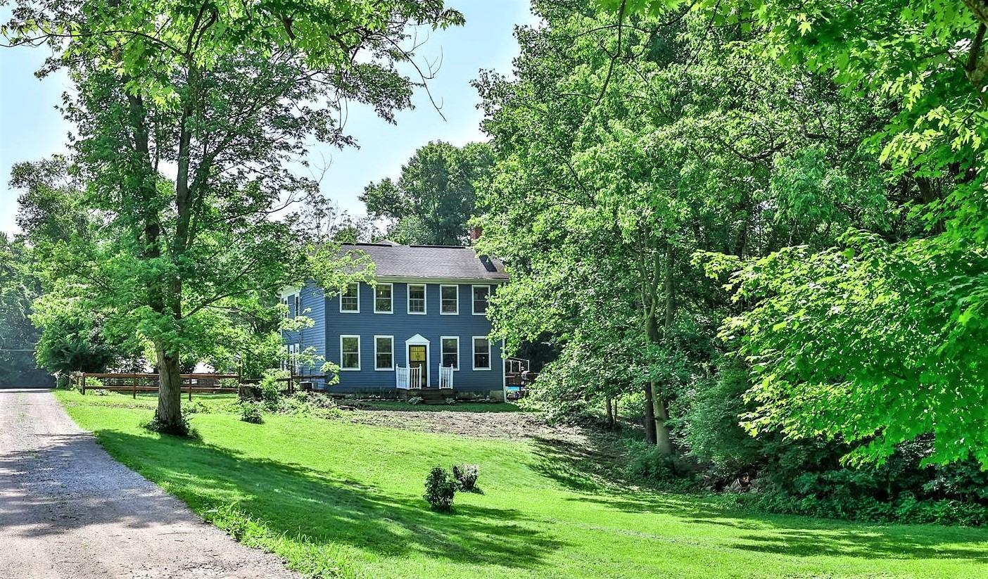 Very Charming and attractive 2 story home sits back on a private drive on 1.47 acre wooded lot! Features 3 Bedrooms, 2 full Baths Living Rm Family Rm & Dining Rm. Hardwood floors, built-ins, 3 fireplaces, vaulted Primary Bedroom & spacious Kitchen. Approx. 2300 sf of living space. Fenced yard & beautiful wooded setting. Great opportunity to own this one of a kind older home!