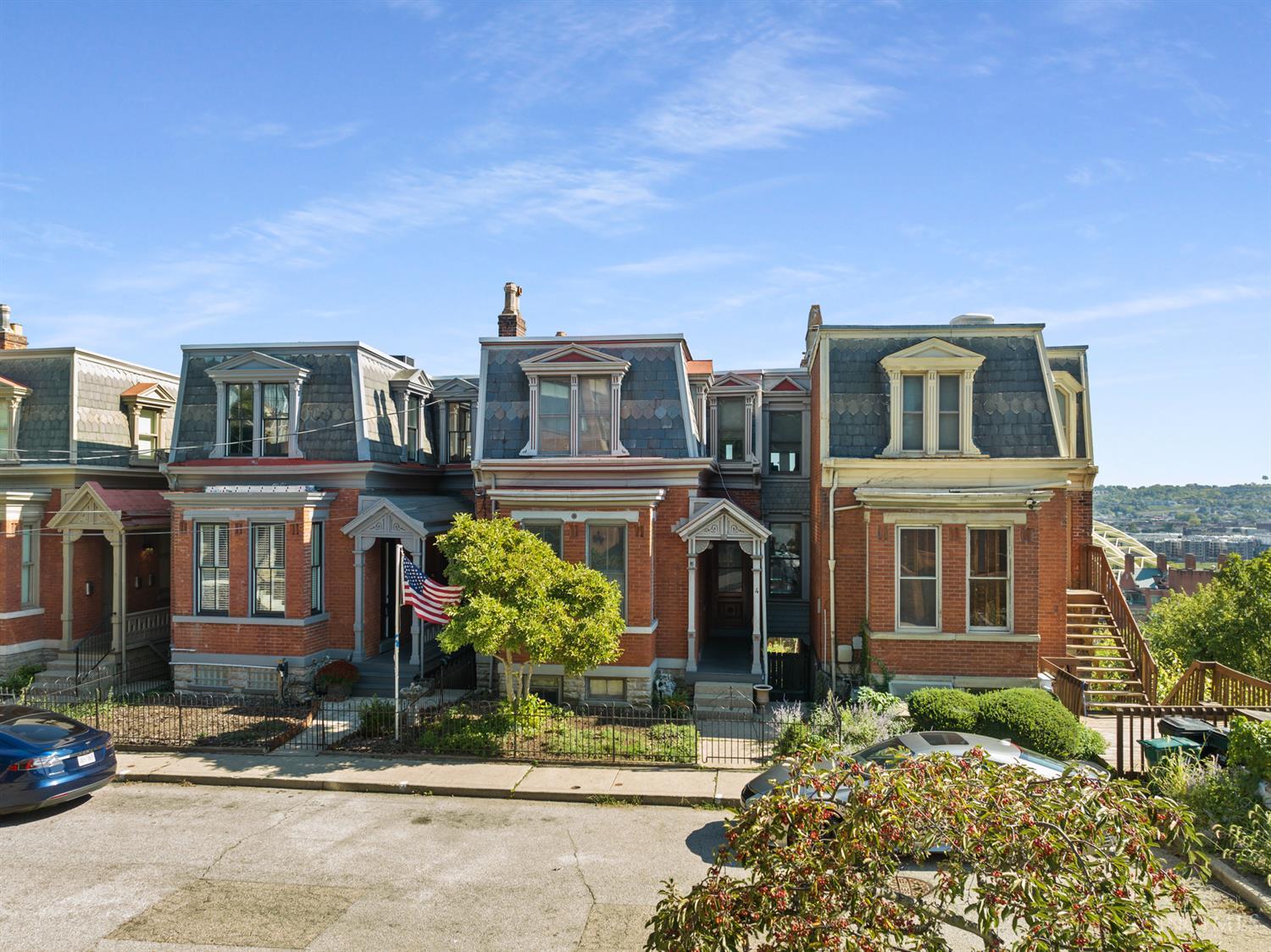 Complete renovation of property in 1990. 2,400 sq.ft. 2 story, 2 bedroom townhouse on top 2 levels, skylight above staircase. Primary bedroom has covered walk-out deck that overlooks the river and Kentucky hillsides. Additional bedroom with separate bath. Full laundry. Separate apartment living space on ground level with rare urban garden and walk out patio. Enjoy panoramic views and Riverfront Fireworks. Being sold with adjacent 6 Filson Place. 2 front parking spaces at end of street at 1012 Celestial. Endless possibilities.