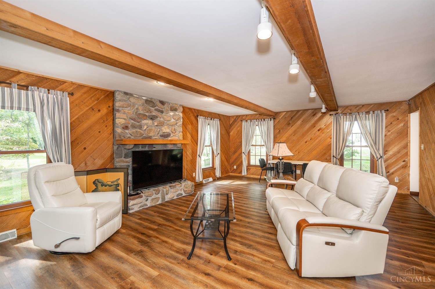 Rare opportunity for this exquisite home situated on just over 8 acres of wooded tranquility. Beautifully maintained deck with hot tub, oversized 3-car garage, and private setting. Fantastic entertainment space with a large kitchen and breakfast area. Wood burning fireplace. 2 bedrooms, both with ensuite bathrooms. Unfinished basement with ability to finish.