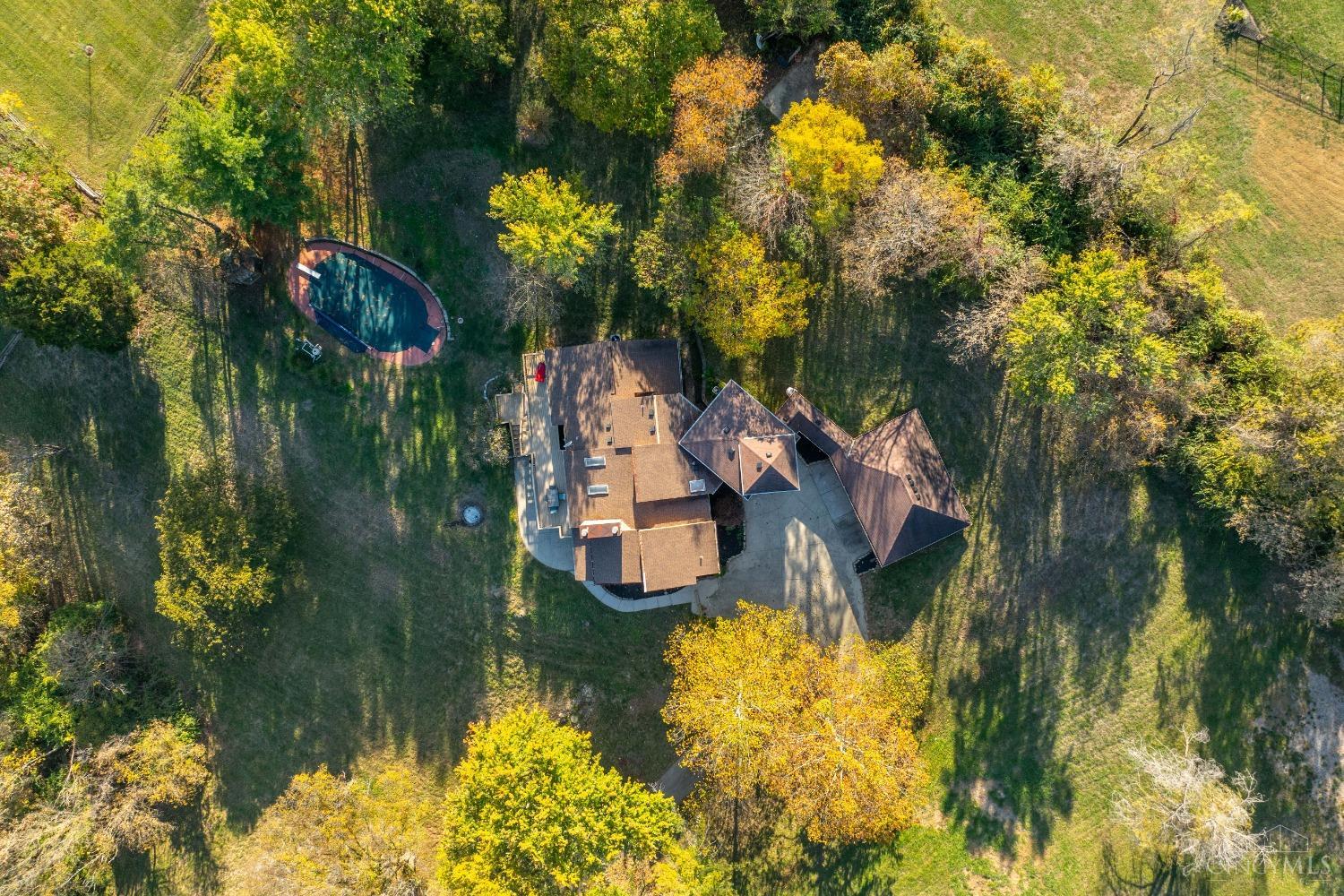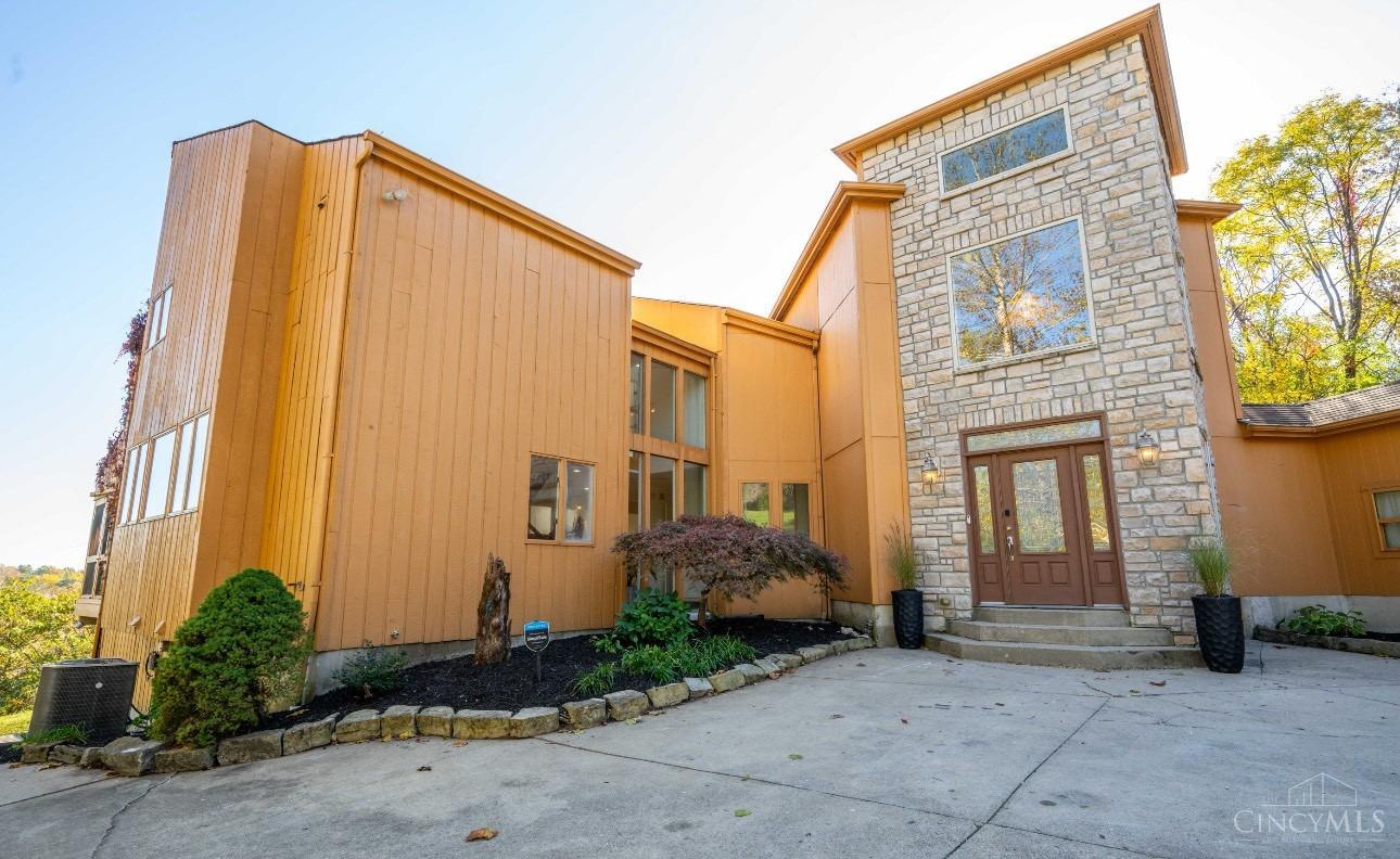 A retreat like no other, this contemporary design boasts mid-century modern stylings and over 5000 square feet of living space. With more than 3 private acres, come enjoy the rustic setting, mature trees, and Gunite swimming pool. Three floors of living space with intriguing architecture at every turn. First floor offers robust natural light, eat-in kitchen, and a primary suite with adjacent office. Escape to the lower level to enjoy the walk-out recreation/family room, game room, & sauna. Plenty of living space on the 3rd floor including loft spaces overlooking the living room and foyer. 3 climate control zones and 2 wood burning fireplaces. Cast your personal vision to make this Green Township estate all it can be.