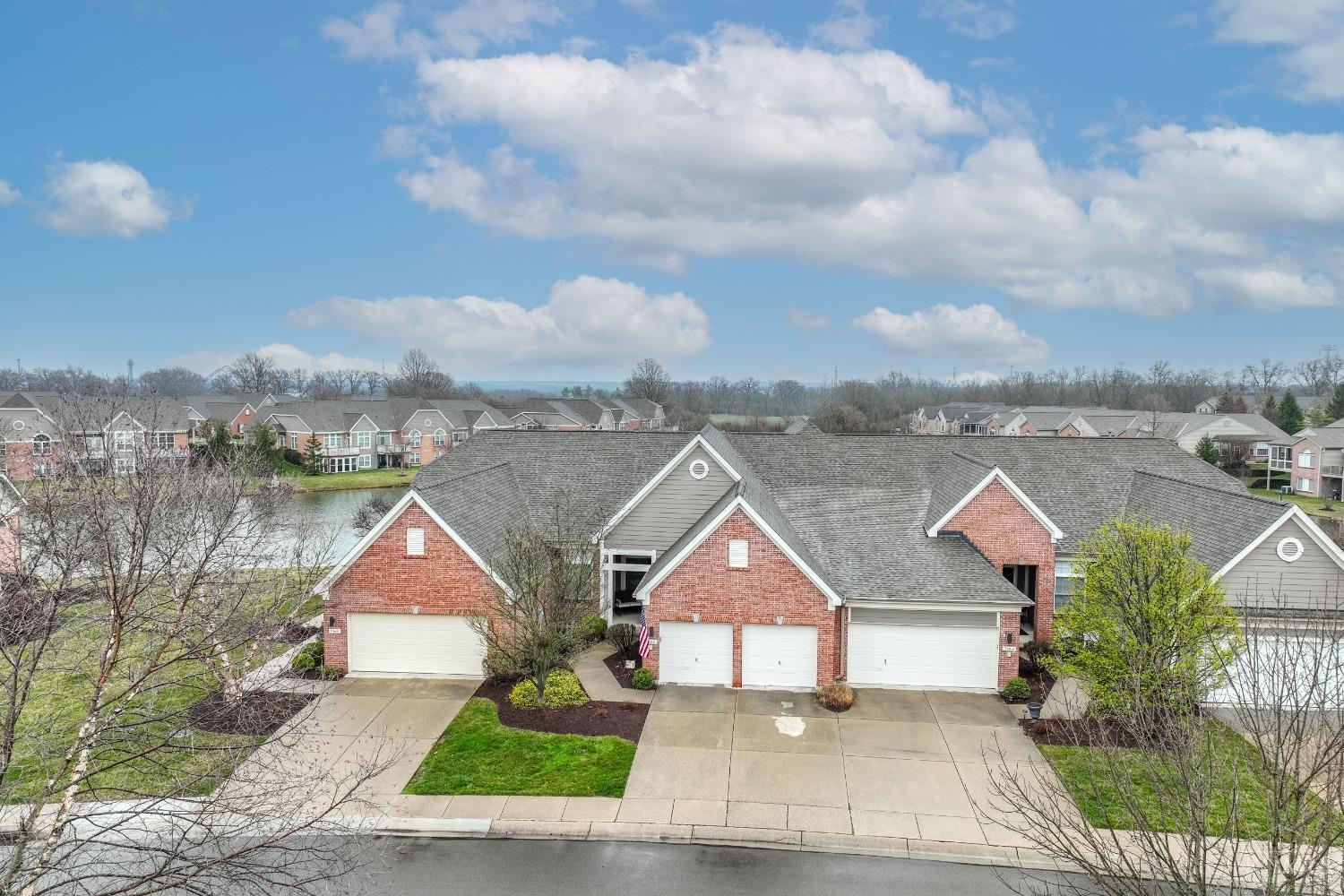 Sensational lakefront view! 2,300+ square foot elevated ranch condo with 2 car garage. Bright and open with high ceilings. First floor spacious primary suite with large walk-in closet, as well as study, and laundry room. Finished lower level with walk out to covered patio. Superior view of the lake. HOA dues includes community pool, clubhouse, mowing, snow removal and exterior maintenance. Great central location, minutes to I-71, Mason schools. Submit offers by Monday 3/18/2024 at 2:00 pm. Owner reserves the right to accept an offer earlier.