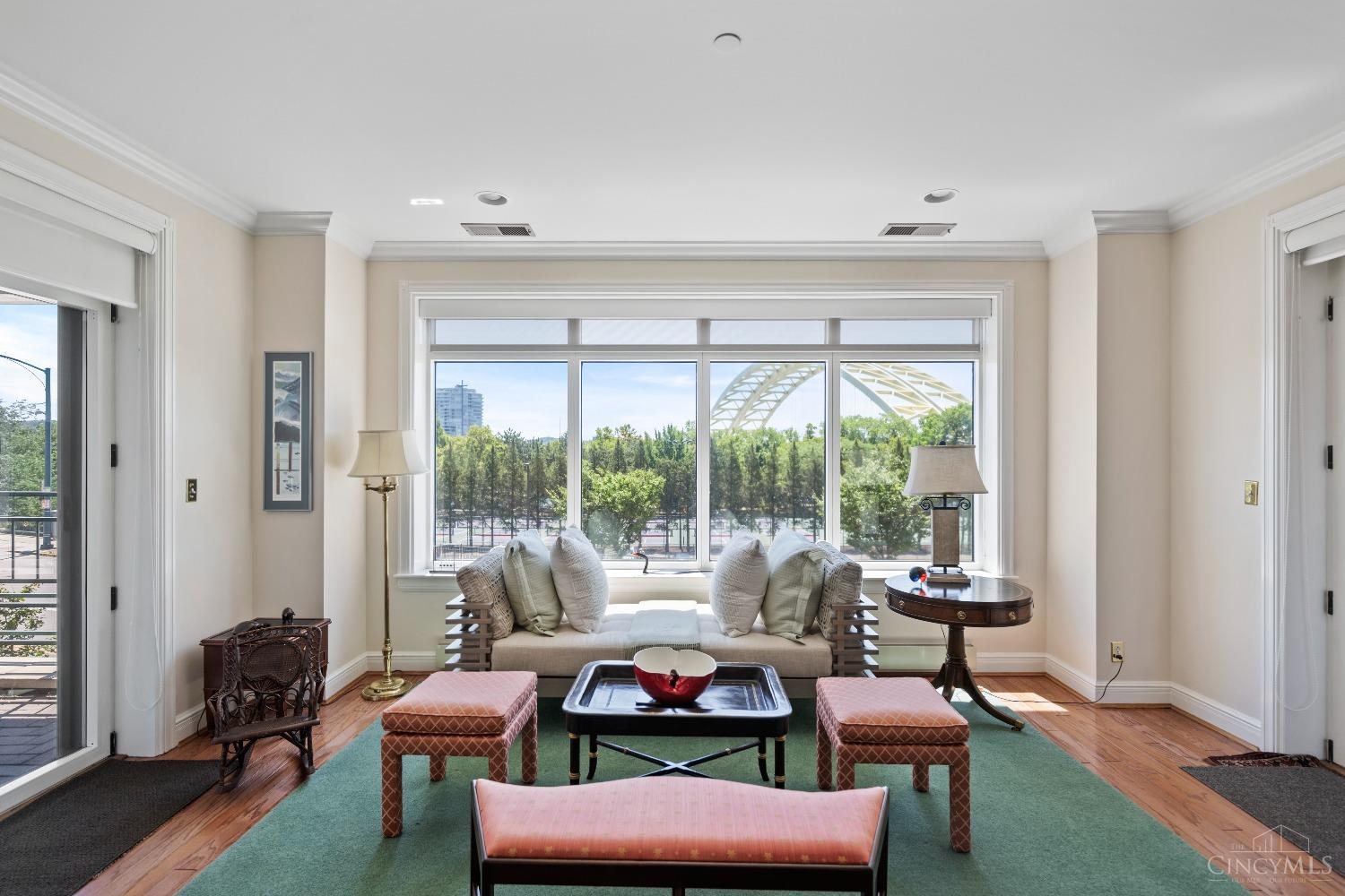 Nearly 3,000 square foot safe and secure residence with near-lobby-level entrance is perfect for entertaining. Large light-filled formal areas, two balconies overlooking river and park views, spacious den/study (could be 3rd bedroom), hardwood throughout except BR #2. Updated HVAC and water heater, lighting and window treatments. Move-in ready! Two garage spaces. Discover and enjoy a carefree lifestyle at Adams Place. Outstanding amenities including superb staff, 24 hour door person, 2 guest rooms, library, fitness room, large fenced dog park, heated pool, and limo/driver.