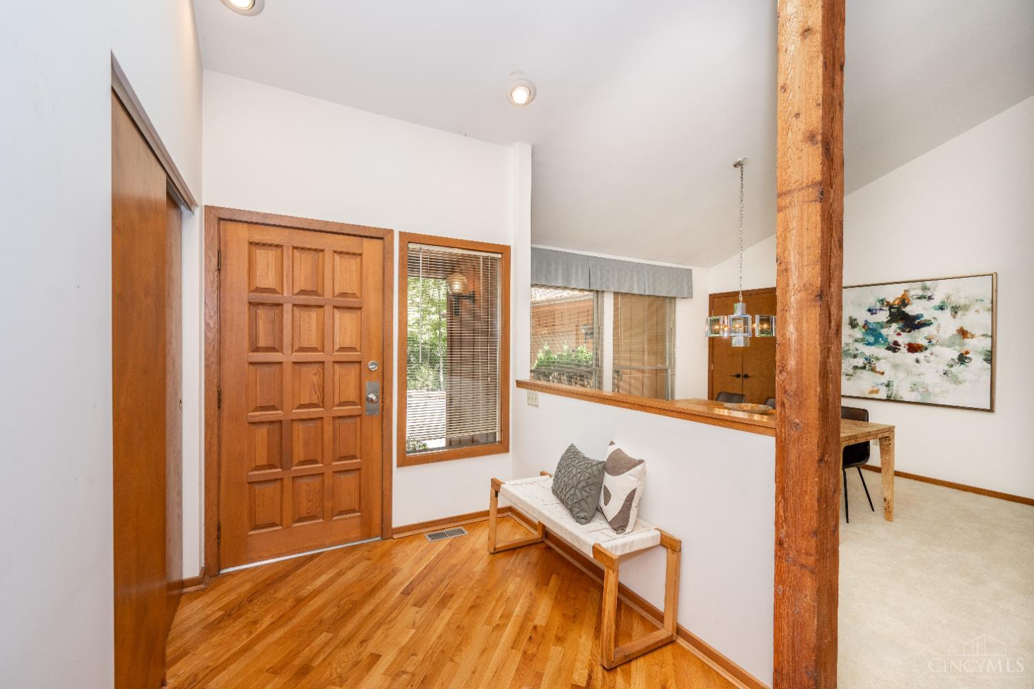 Welcome to Woodcreek, a lifestyle community certified by the National Wildlife Federation as a Backyard Wildlife Habitat. Enjoy ponds, a nature trail, community pool, tennis & pickleball courts, plus easy access to shopping, dining, and freeway. This home is situated on over an acre of wooded privacy & offers a new roof, HVAC, added insulation, & hot water heater. The two-sided stone wood-burning fireplace, vaulted ceilings, and skylight bring warmth & character. An eat-in kitchen & formal dining room provide space for gatherings, while the first-floor laundry and owner's suite with walk in closet provide added convenience. The finished walkout basement features a wet bar & media room, perfect for entertaining! Step outside to a large deck with wooded views & enjoy your own private retreat. Woodcreek offers the perfect blend of natural beauty, community amenities, and everyday comfort. Estate sale - property being sold as is.